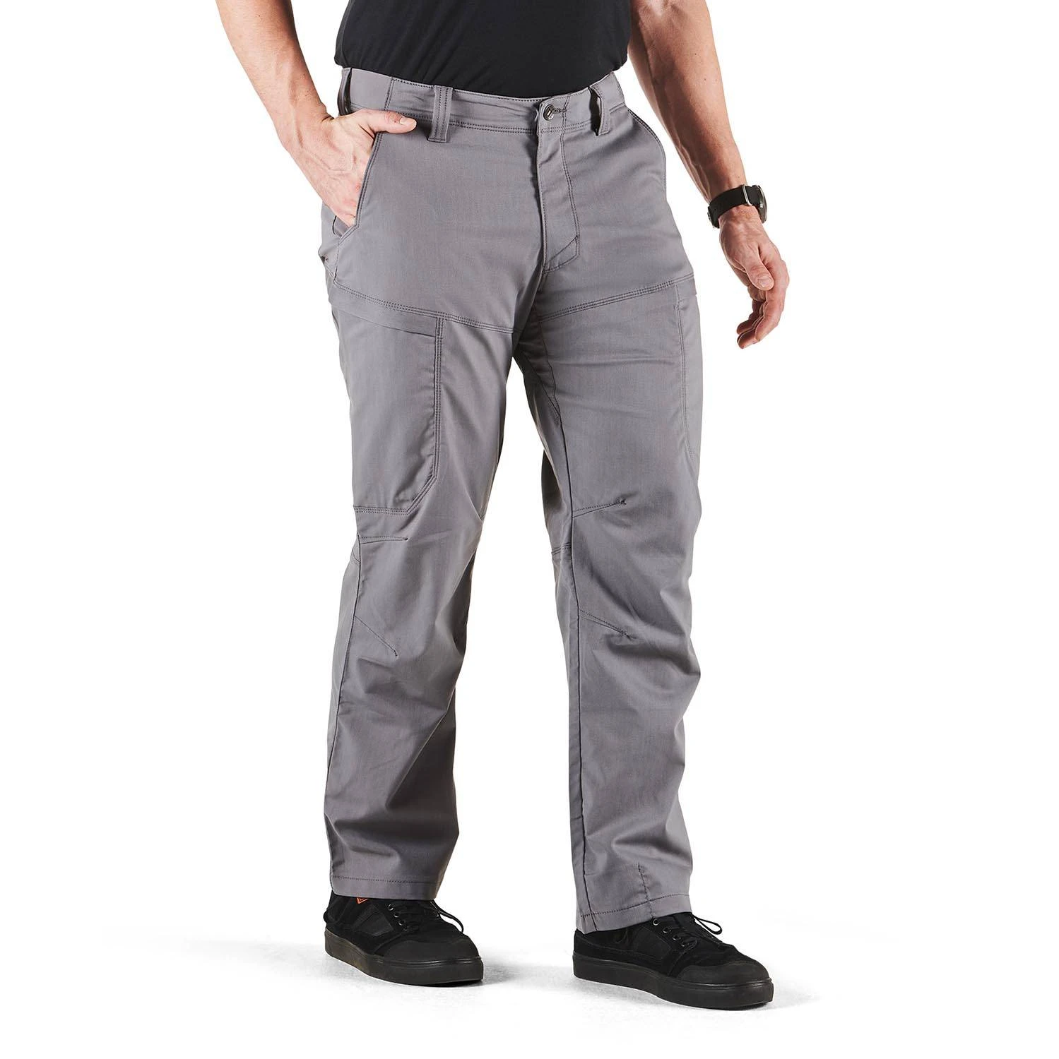 The Apex Pants are a next- generation cargo pant combining a functional design, precision engineering, and reliable construction. The versatility of the 5.11 Apex Pant is next to none. These pants are ideal for the work site or a night out with your special someone. The front hip pockets sport reinforced fabric at the knife clip, and thigh- mounted cargo pockets include zip closure to keep your gear safe and stable when on the move. Internal pockets are sewn into each cargo pouch and twin back pockets. The provide adequate room for all sized of AR magazines and spare ammo. These pants have two secret pockets inside the waistband one located on the inside waistband and another smaller handcuff key pocket hidden in the rear portion of the waistband. There are seven sturdy belt loops and articulated knees to ensure free unimpeded movement.